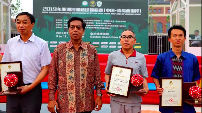 經(jīng)過4天的激烈角逐,最終泰國隊包攬了男子四人組、女子四人組、男子三人組、女子三人組冠軍,越南隊獲得男子三人組亞軍,中國二隊分別獲得女子四人組和女子三人組亞軍,男子四人組季軍為印尼隊和馬來西亞隊,男子三人組季軍為印尼隊和印度隊,女子四人組和三人組季軍均為中國一隊和印度隊。在頒獎儀式,上國際藤球聯(lián)合會秘書長、亞洲藤球聯(lián)合會主席拿督阿布都.哈利姆.卡德爾致辭,表示賽事舉辦得非常成功,并為賽事承辦單位及運營單位“青島西海岸新區(qū)教育和體育局”、“青島黃島發(fā)展(集團)有限公司”、“江蘇一鳴體育文化傳播有限公司”頒發(fā)了特別貢獻獎榮譽證書。
