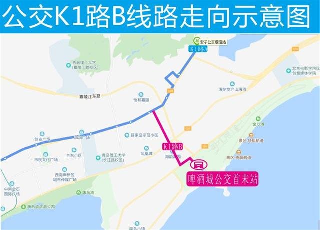 線路走向:由黃島輪渡發(fā)車按原線路運(yùn)行至海韻嘉園后,經(jīng)嘉陵江東路、金沙灘路到達(dá)啤酒城公交首末站。