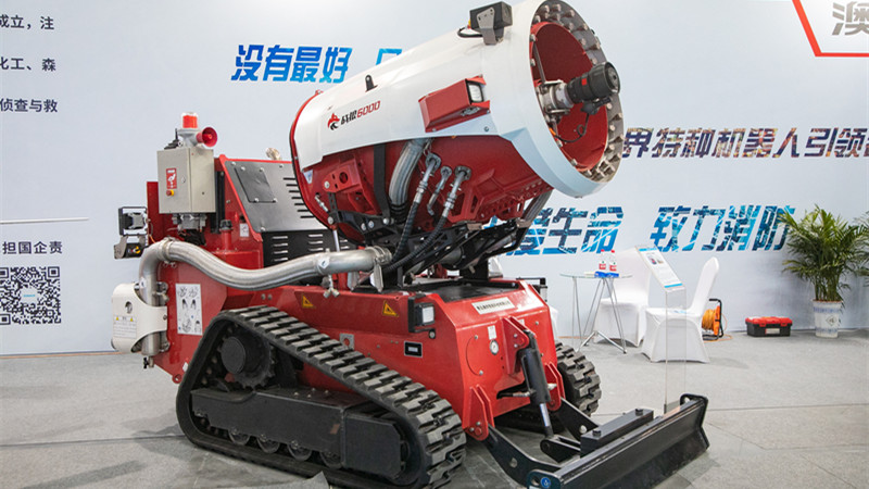 在無(wú)人直升機(jī)旁邊,一個(gè)“大塊頭”也被不少人圍觀?!斑@是第一次亮相展會(huì)的霧炮消防滅火排煙機(jī)器人。”劉發(fā)德告訴記者,該機(jī)器人是一款集滅火、排煙和偵查功能于一體的多功能消防機(jī)器人,其帶有的多種噴水模式,能夠適用于不同情況下的滅火,可以快速移除火中熱量并降低溫度,從而實(shí)現(xiàn)滅火和排煙功效。