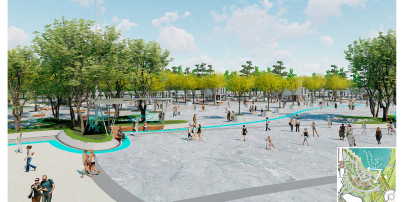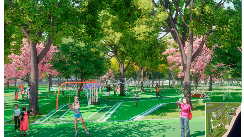 城市陽(yáng)臺(tái)景觀提升工程聚焦承載慶典集會(huì)與日?;顒?dòng)的彈性使用需求,合理利用現(xiàn)有空間、增加互動(dòng)景觀,打造可以交互共享的公共空間。工程總面積3.7萬(wàn)平方米,總投資3500萬(wàn)元,包括市民文化廣場(chǎng)提升和新建體育公園兩部分。其中,市民文化廣場(chǎng)提升面積2.3萬(wàn)平方米,建設(shè)藝術(shù)休閑區(qū)和文化廣場(chǎng)區(qū),引入展覽、文創(chuàng)工作室、咖啡廳書(shū)吧、創(chuàng)意圖書(shū)館等功能業(yè)態(tài)。體育公園面積1.4萬(wàn)平方米,將建設(shè)籃球場(chǎng)、五人制足球場(chǎng)、滑板場(chǎng)等。同時(shí),還將建設(shè)兒童樂(lè)園,為孩子們提供理想的游樂(lè)場(chǎng)所。