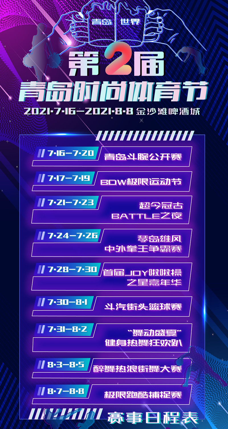 7月16日-8月8日,第31屆青島國際啤酒節(jié)將在青島西海岸新區(qū)金沙灘啤酒城舉行。屆時(shí),第二屆“時(shí)尚體育節(jié)”將在金沙灘啤酒城舉辦,包含斗腕、極限運(yùn)動、拳王爭霸賽、搏克、街頭籃球、街舞、跑酷等9大類賽事30余項(xiàng)體育活動。與去年相比,本屆體育節(jié)賽事規(guī)格升級、活動多樣、參賽范圍更廣,體育競賽表演更豐富,將為市民游客奉上一場集競技性、觀賞性、參與性于一體的體育盛會。