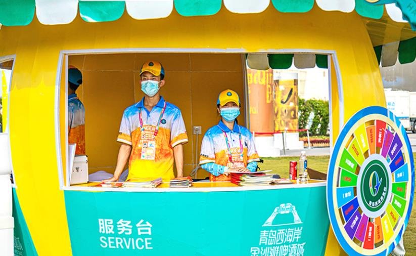 ▲志愿者參與啤酒節(jié)服務(wù)保障工作。