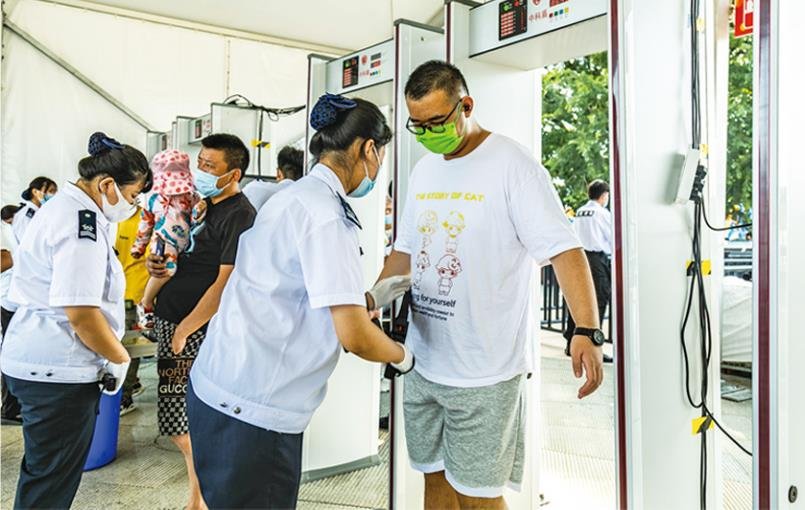 ▲安檢人員對入城游客進行細(xì)致檢查?! ?nbsp;