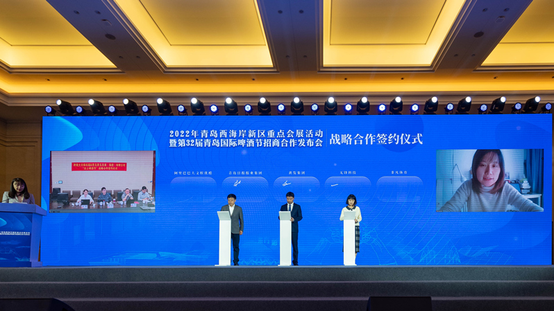 11月30日,青島西海岸新區(qū)召開2022年重點會展活動暨第32屆青島國際啤酒節(jié)招商合作發(fā)布會。會上,解讀了《青島西海岸新區(qū)關于打造最美會展海岸帶建設國際會展名區(qū)的實施意見》,發(fā)布了2022年青島西海岸新區(qū)68項重點會展活動,并對招商資源進行了推介。黃發(fā)集團現(xiàn)場作了第32屆青島國際啤酒節(jié)招商推介,詳細介紹了招商資源優(yōu)勢、招商板塊、合作模式、合作權(quán)益,重點推介了啤酒節(jié)的品牌啤酒、特色美食、文化演藝、時尚活動、體育賽事、廣告資源、線上營銷、旅游研學、IP開發(fā)等九大板塊內(nèi)容。