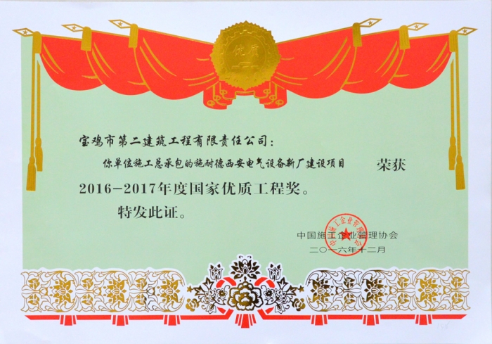 國(guó)家優(yōu)質(zhì)工程獎(jiǎng) (施耐德西安電氣設(shè)備新廠建設(shè)項(xiàng)目)