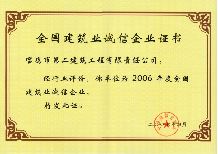 2006年全國(guó)建筑業(yè)誠(chéng)信企業(yè)