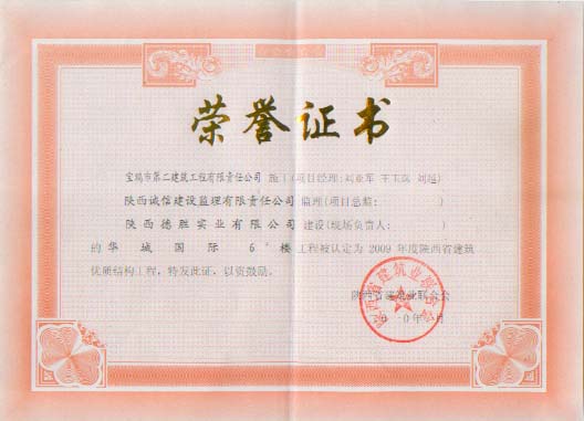2009年省級(jí)優(yōu)質(zhì)結(jié)構(gòu)工程(華城國(guó)際)